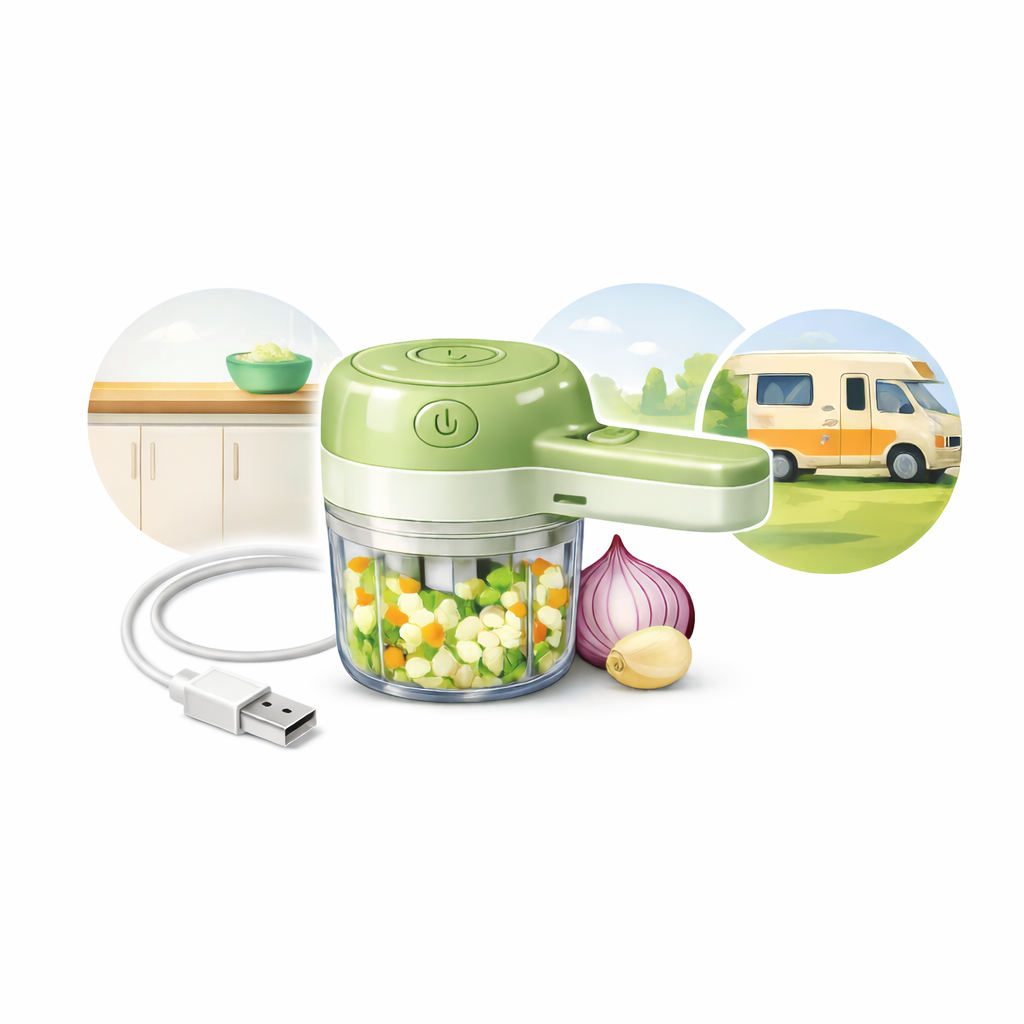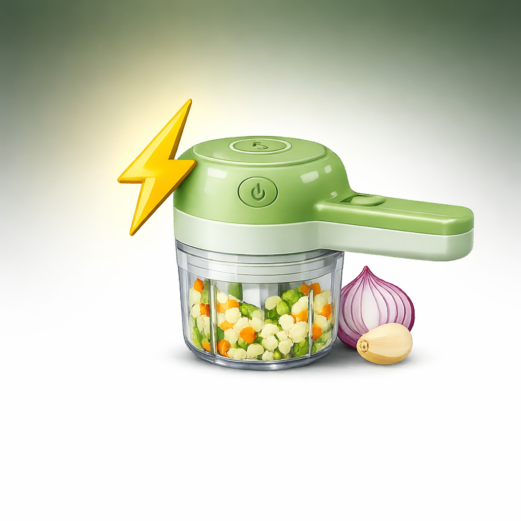 Trita aglio, cipolla, verdure ed erbe con un solo pulsante. Niente più tagli noiosi.