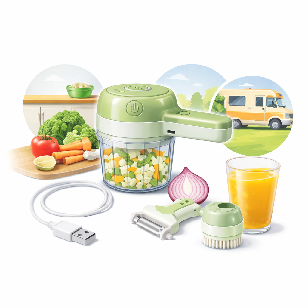 Lama per tritare -Pressino di sicurezza Pelapatate / pelaverdure -Spazzola pulizia Cavo di ricarica USB-C